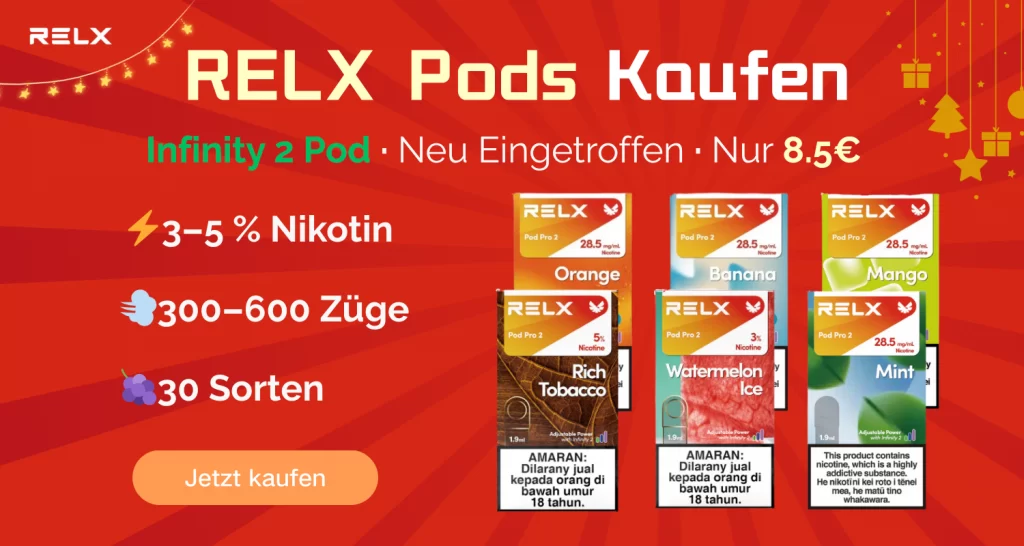 RELX Pods ist der vertrauenswürdigste offizielle RELX-Partner in Deutschland und spezialisiert auf originale Geräte, Pods und Liquids. Unser Ziel ist es, sowohl Anfängern als auch erfahrenen Nutzern ein sicheres, hochwertiges und modernes Dampferlebnis zu bieten.